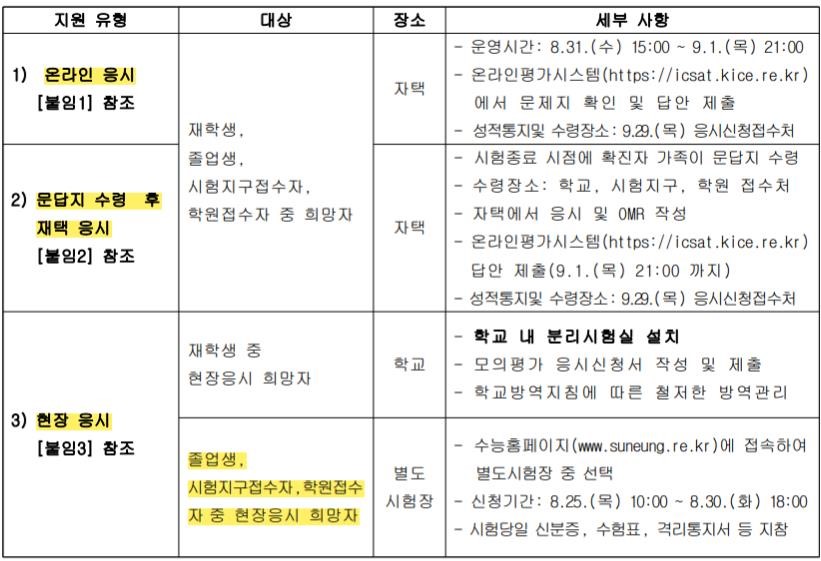 2023학년도 대학수학능력시험 9월 모의평가 코로나 확진자 응시 안내