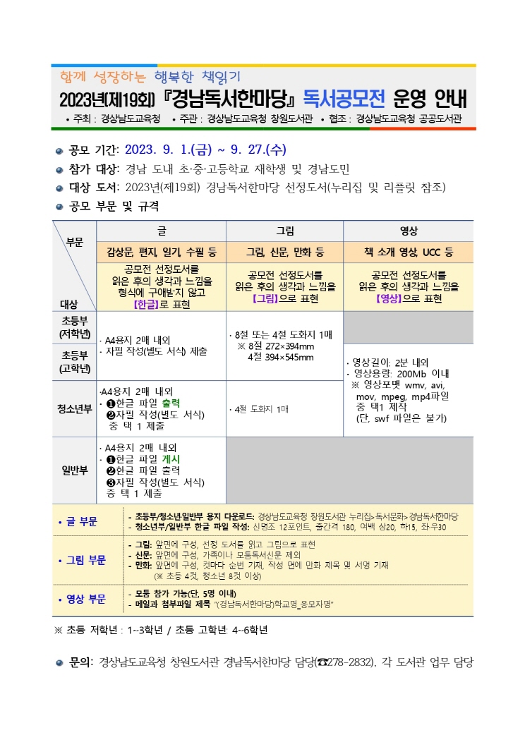 2023년(제19회) 경남독서한마당 독서공모전 안내