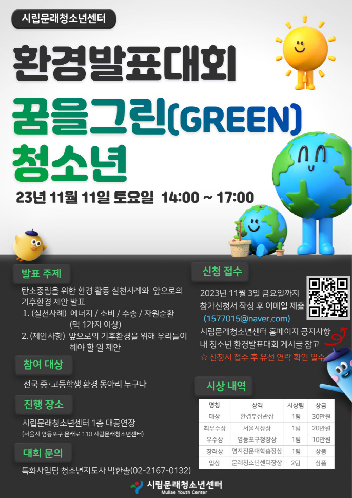 2023 청소년환경동아리 발표대회 ‘꿈을 그린(Green) 청소년’ 안내