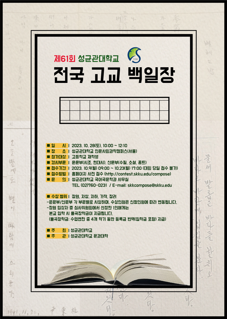 제61회 성균관대학교 전국 고교 백일장 개최 안내